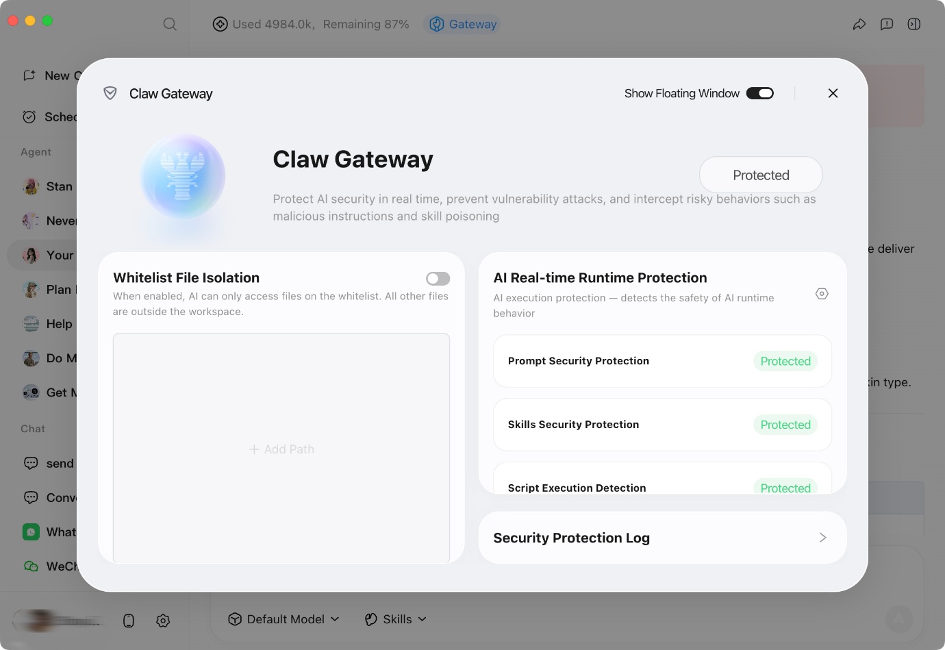 QClaw runs on the user’s device, with all data processed within the user environment. It also introduces a dedicated security module called “Claw Gateway”, providing end‑to‑end protection for AI operations — including real‑time detection of malicious instructions and skill poisoning risks.